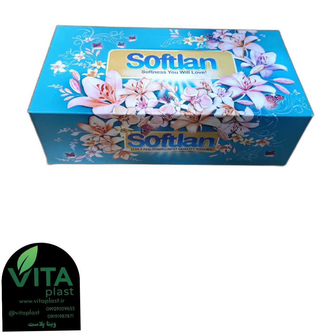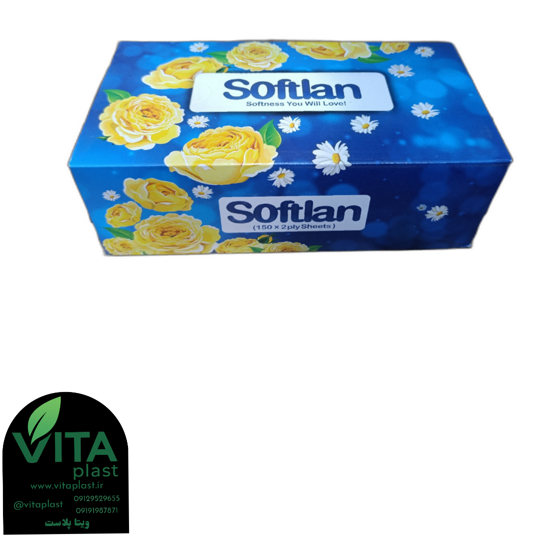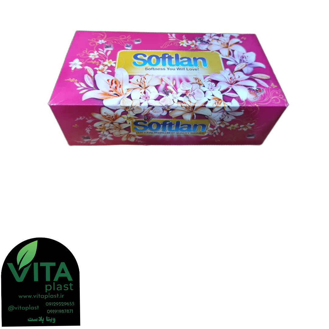 دستمال کاغذی جعبهای فانتزی سافتلند | طرح گلدار، ۳۰۰ برگ، نرم، شیک و بهداشتی